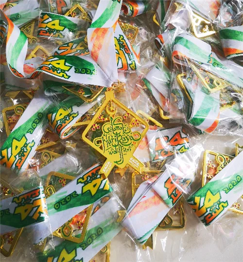How come a medal without ribbon? Each medal will be mounted with a beautiful plain or custom ribbon in our assembling department.