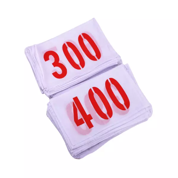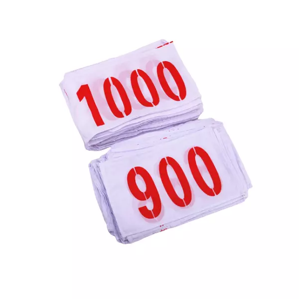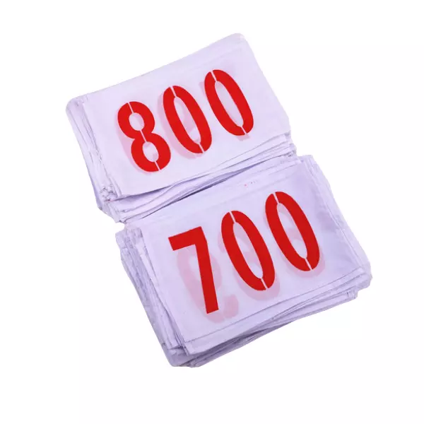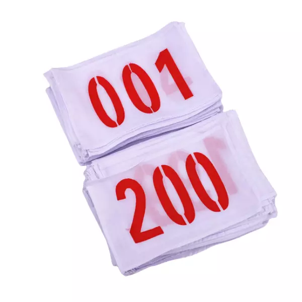 From 001-1500, there are 1500 series reusable sports bib numbers at stock.